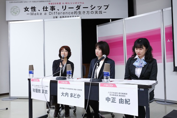 * A-WiL is an abbreviation for Ochanomizu University’s “International Research Program for the Advancement of Women in Leadership,” a special project funded by the Japanese Ministry of Education, Culture, Sports, Science and Technology (AY 2010‒AY 2015).