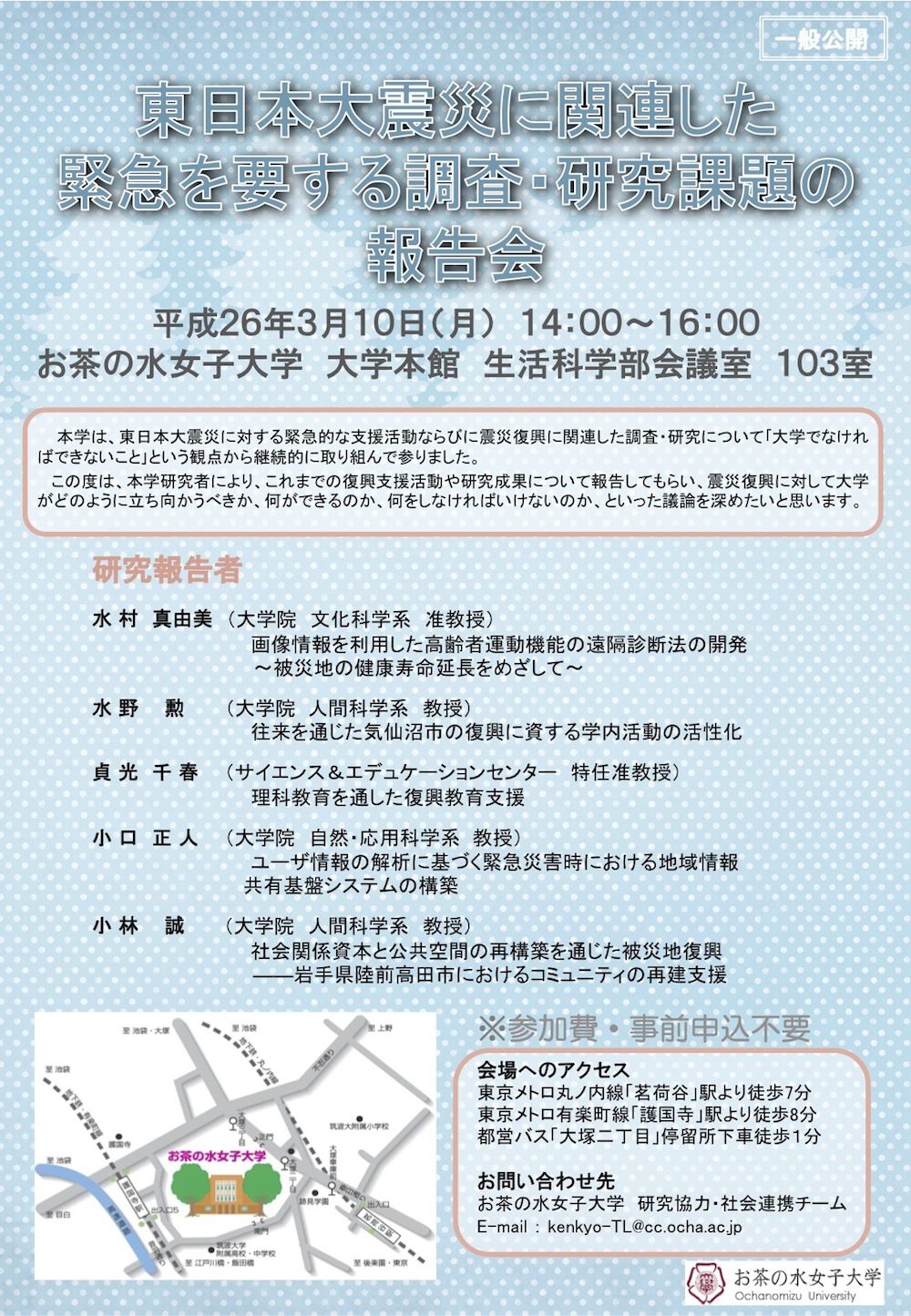 国立大学法人お茶の水女子大学 〒112-8610 東京都文京区大塚2-1-1