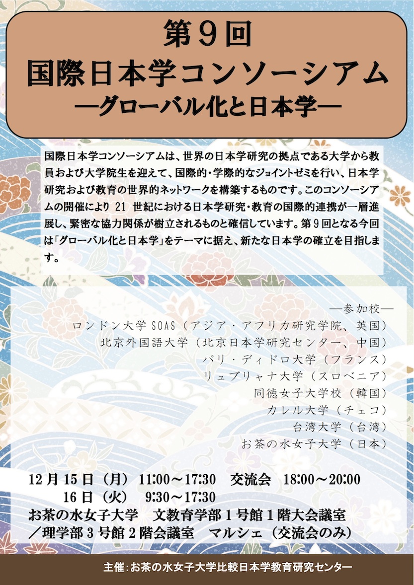 | 主催 | お茶の水女子大学比較日本学教育研究センター |